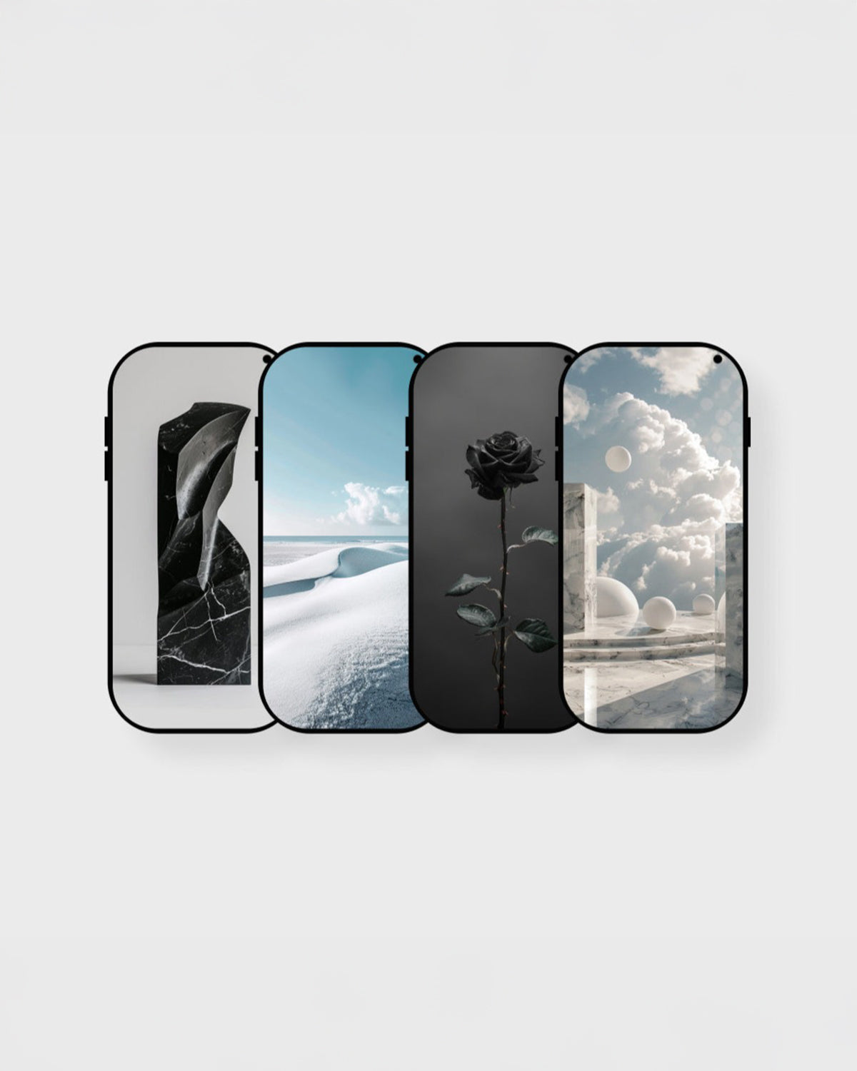 Immerse yourself in a vibrant digital experience with a captivating visual journey every time you unlock your screen. Choose from a wide selection of sleek designs tailored to black & white. Embrace the "All Black" lifestyle.